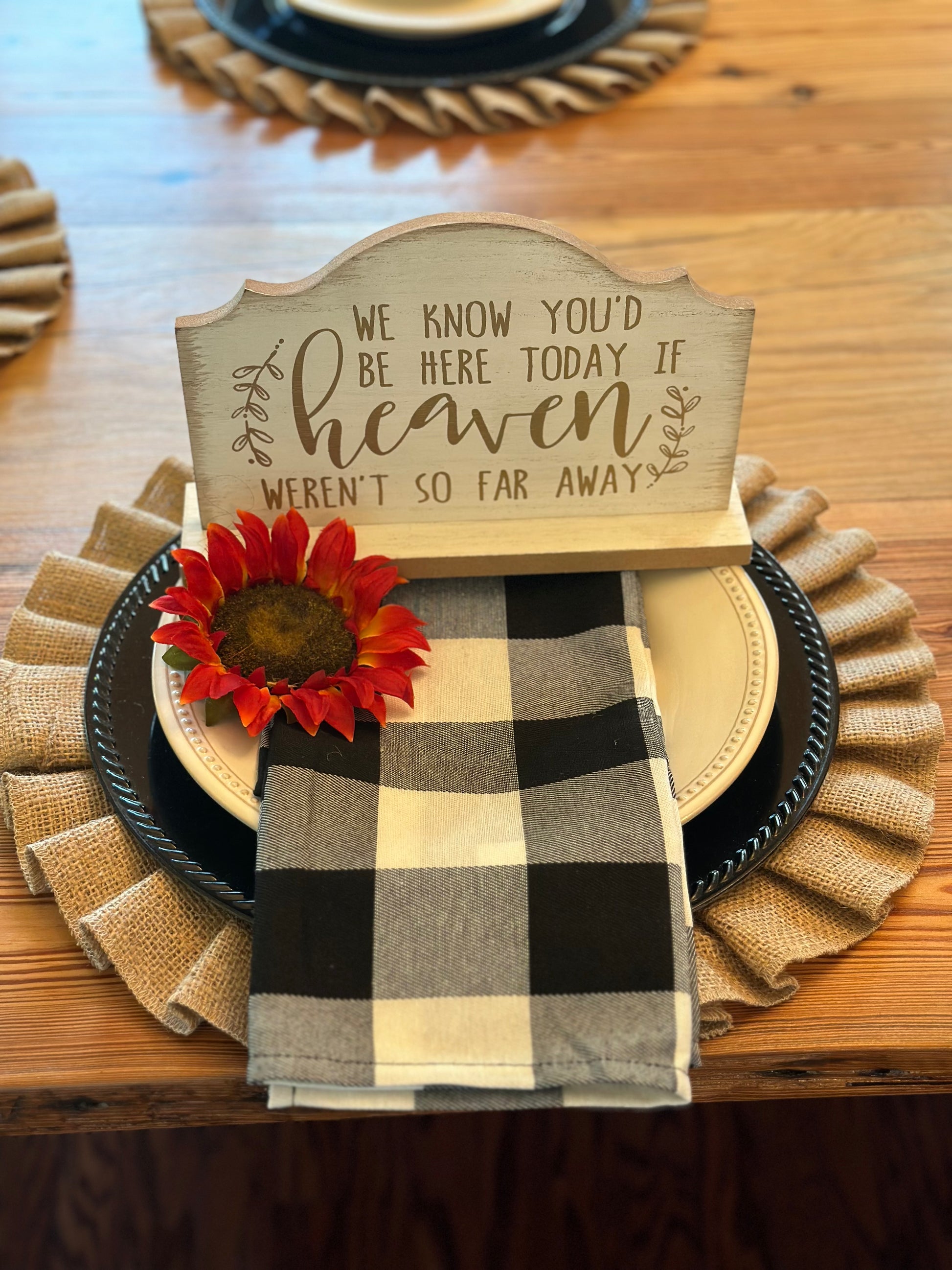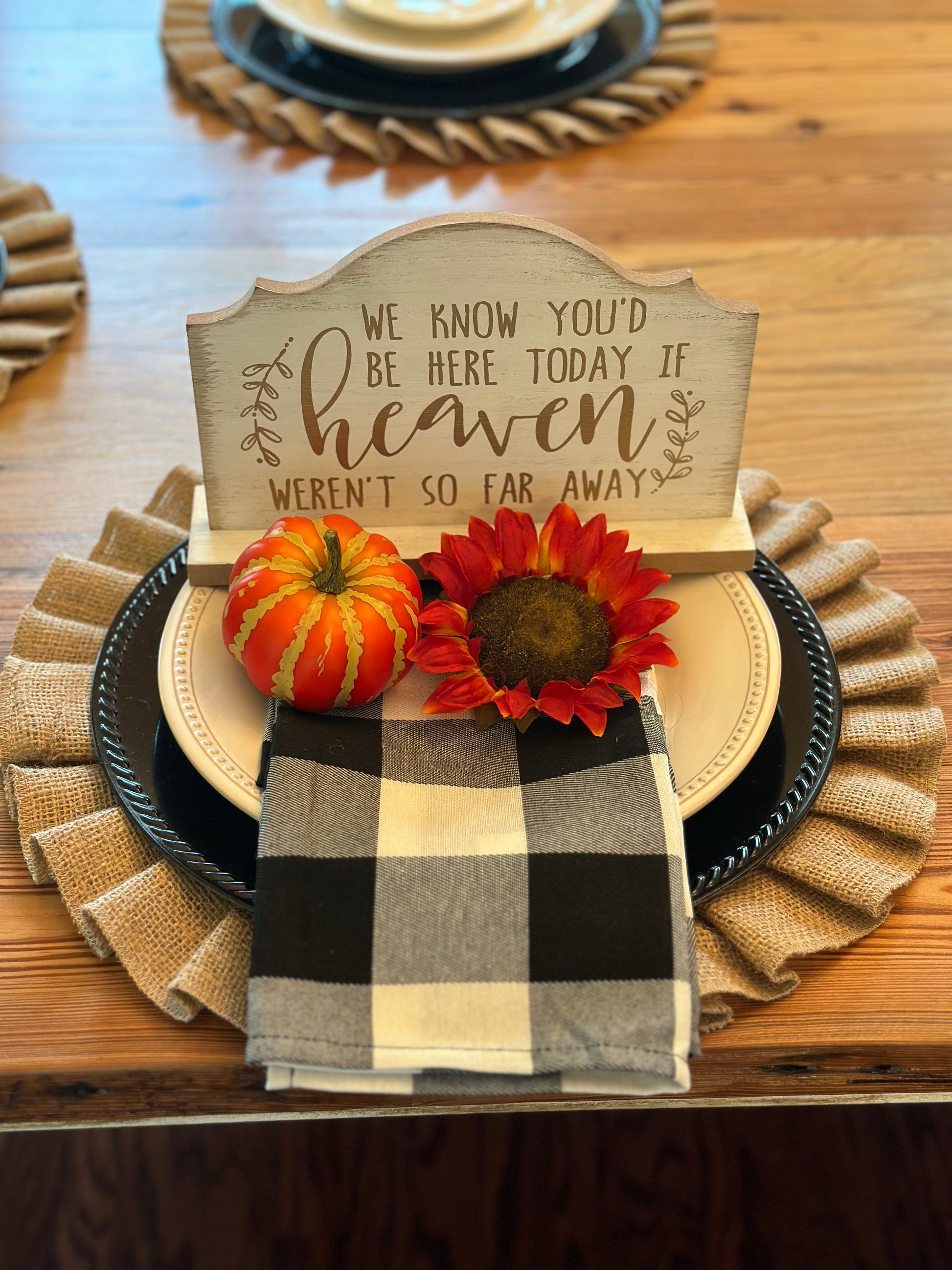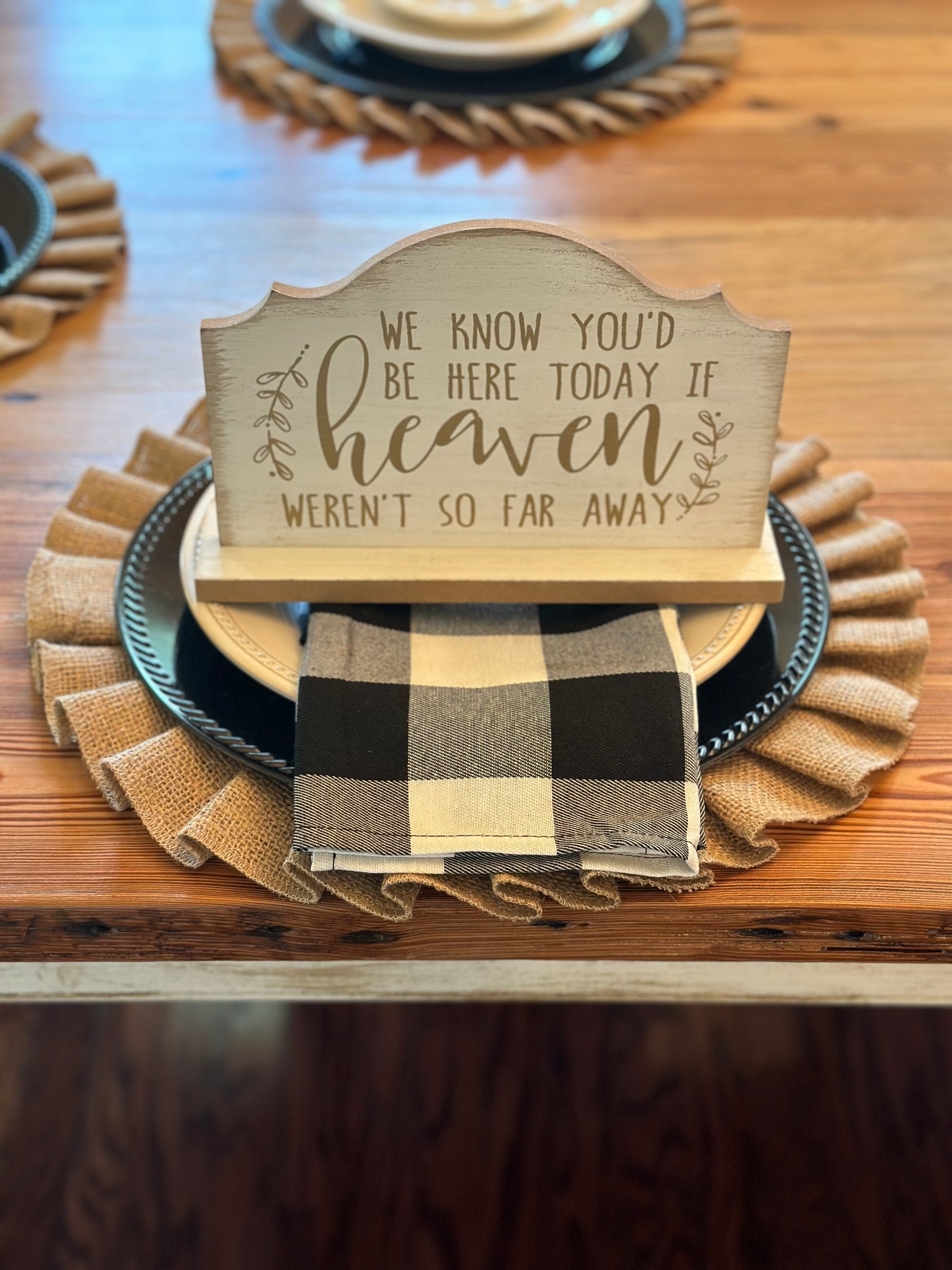 Heaven place setting - “We know you’d be here today if heaven weren’t so far away”