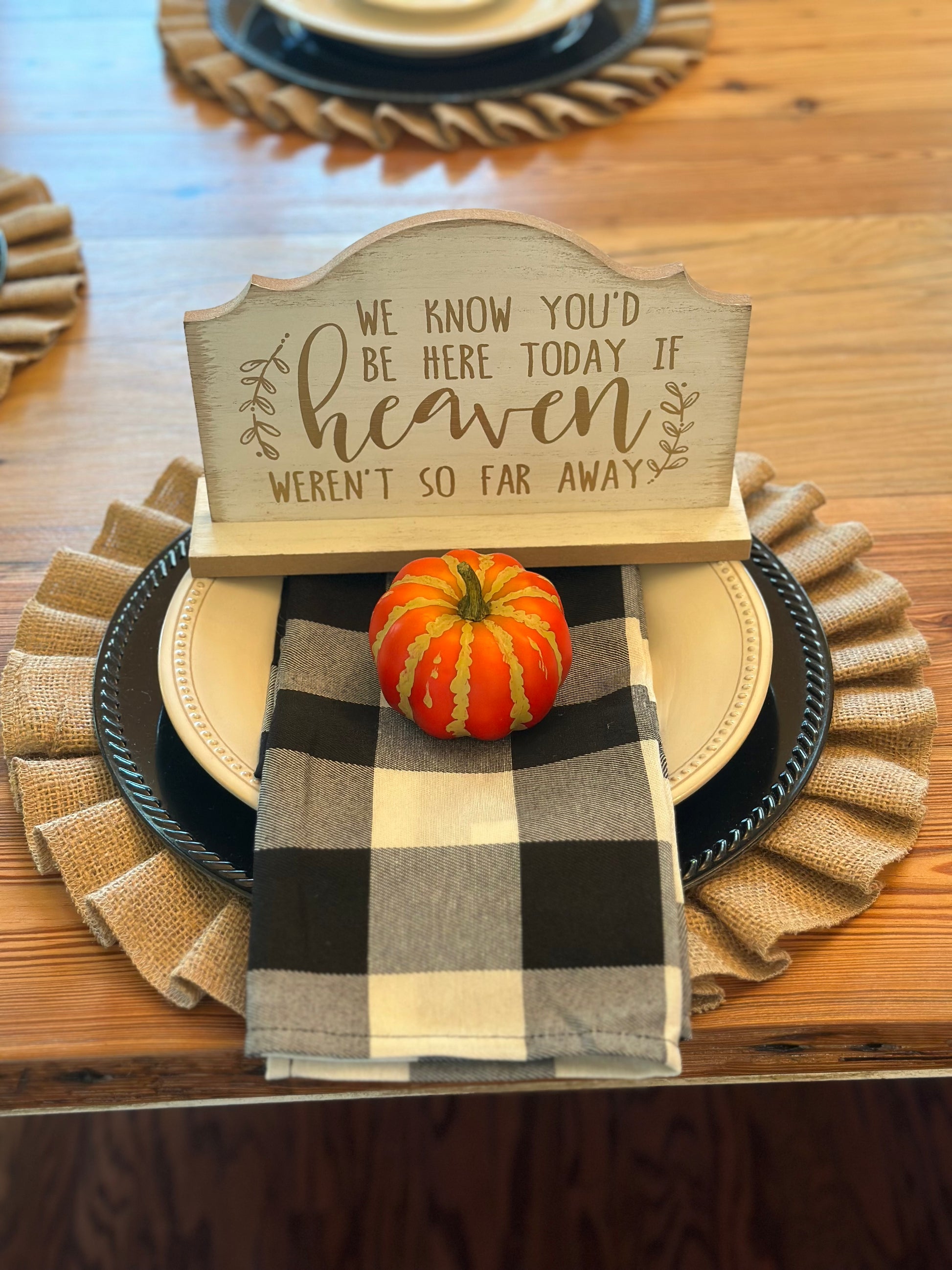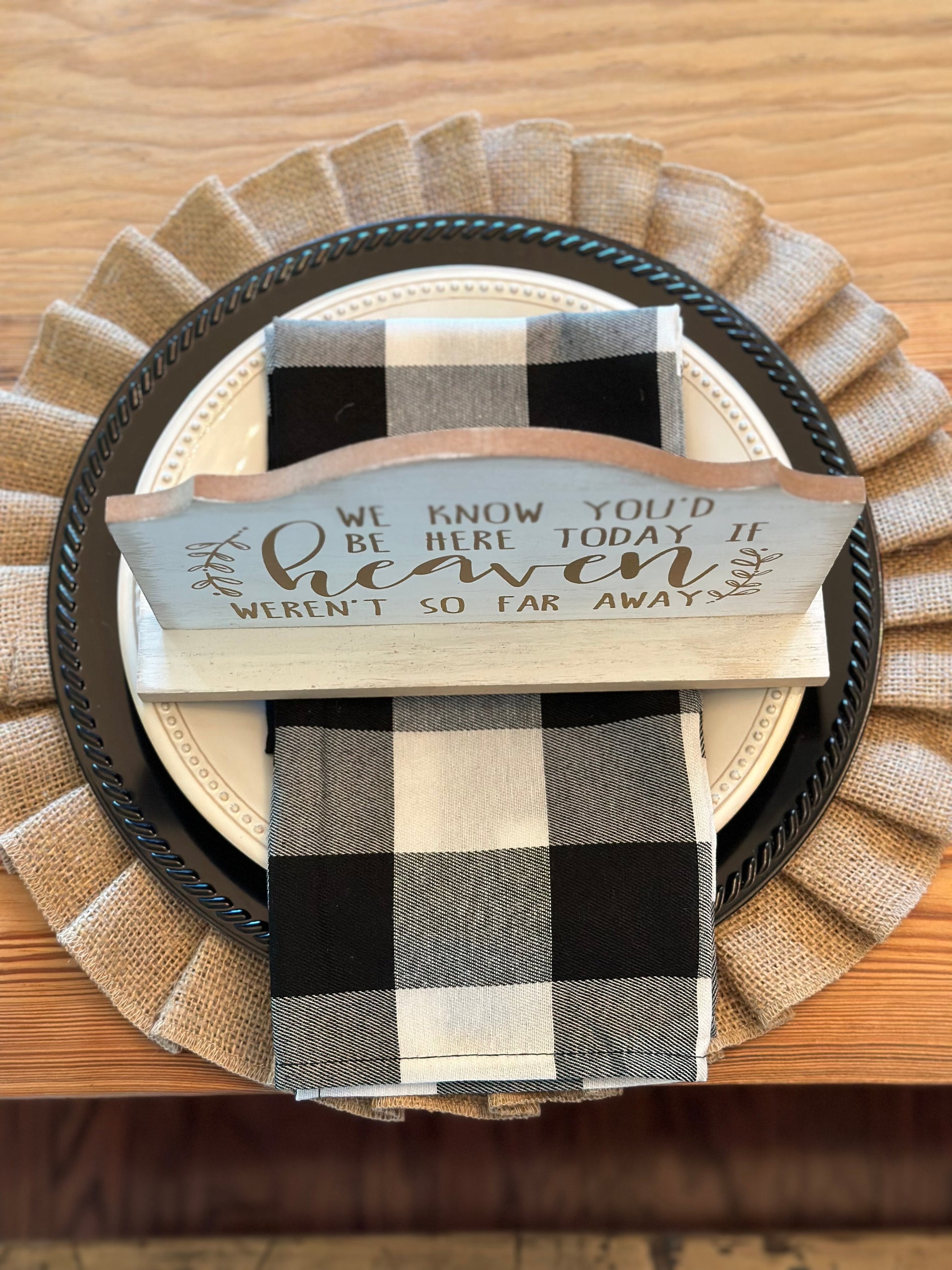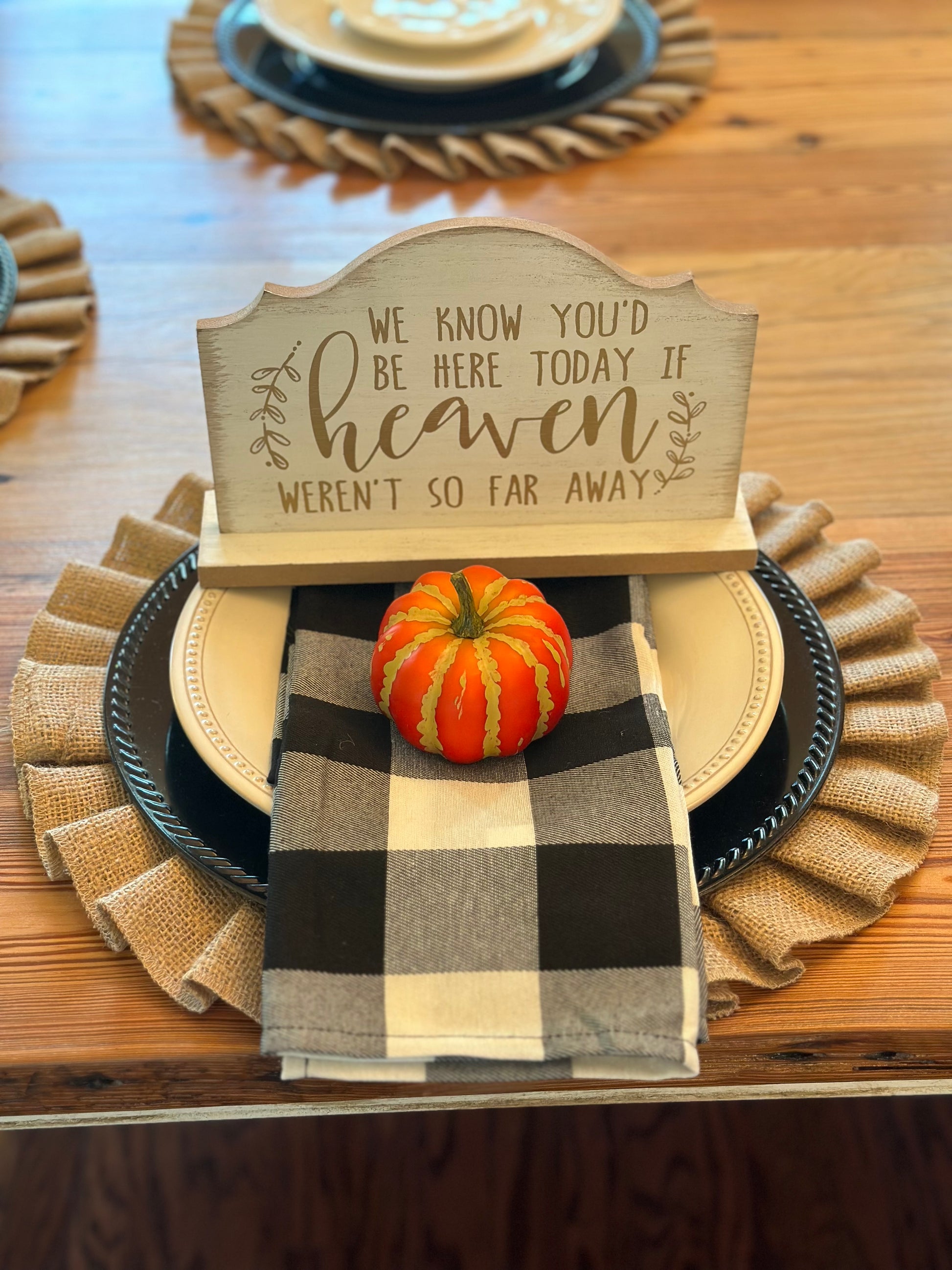 Heaven place setting - “We know you’d be here today if heaven weren’t so far away”