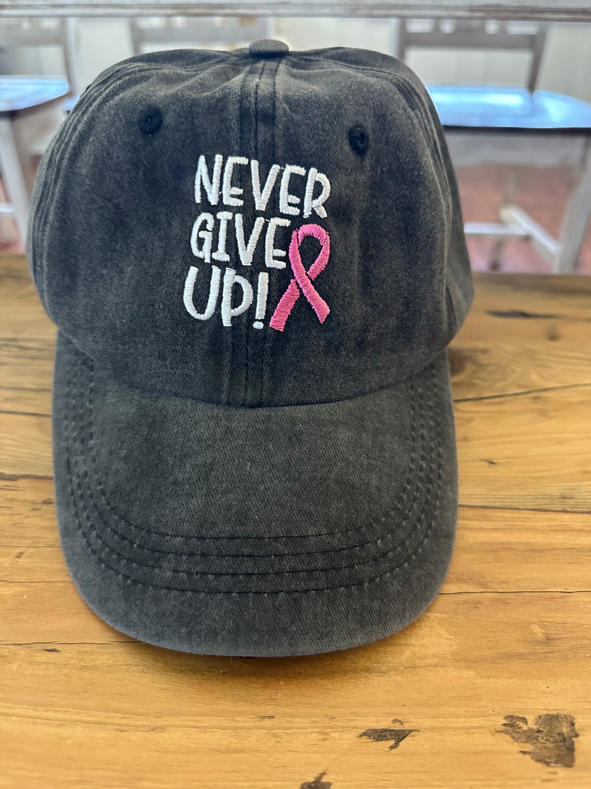 Never Give Up (Breast Cancer) - Charcoal Cloth Hat
